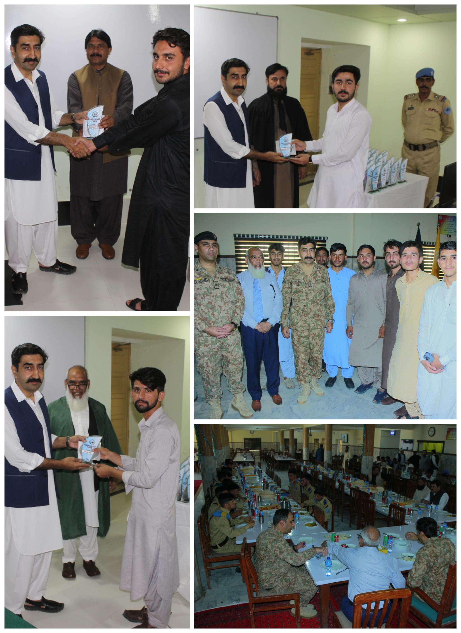 Scholarships awarded by Corps Commander 12 Corps for top 3 position holders in 8th class BAEC board exam. Lt Col Ammar Ishtiaq Satti on the behalf of Corps Comd 12 Corps distributed the prizes among cadets.